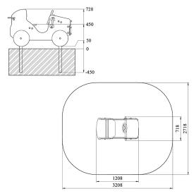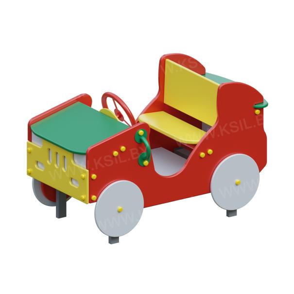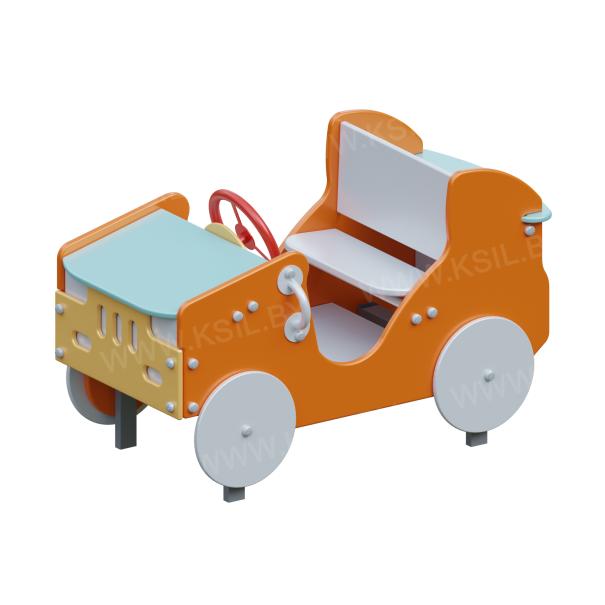 Машинка должна представлять собой модульную сборно – разборную конструкцию и состоять из площадки с корпусом в виде кузовных деталей машины с колесами, поручней, руля и сидений со спинками. Пол площадки должен быть изготовлен из водостойкой противоскользящей фанеры толщиной не менее 21 мм. Корпус внедорожника должен быть изготовлен из водостойкой фанеры толщиной не менее 21 мм. Руль и поручни должны быть выполнена из металлической трубы диаметром не менее 21 мм. Декоративные элементы в виде колес, передней панели с решеткой радиатора и фарами должны быть выполнены из водостойкой фанеры толщиной не менее 9 мм и не менее 15 мм.