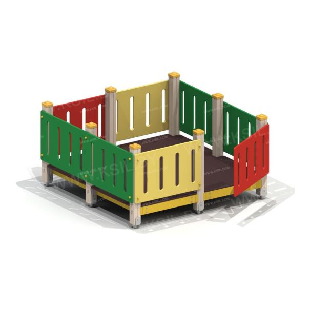 Манеж должен представлять собой устойчивую, модульную конструкцию, обеспечивающий ребенку комфортные условия для игры на открытом воздухе и состоять из башни к которой должны быть пристроены: фанерные ограждения, калитка. Несущие столбы должны быть выполнены из клееного деревянного бруса сечением не менее 100х100 мм и иметь скругленный профиль с канавкой посередине. Снизу столб должен заканчиваться металлическим оцинкованным подпятником диаметром не менее 42 мм, который бетонируется в землю. Пол башни должен быть выполнен из ламинированной водостойкой фанеры толщиной не менее 21 мм. Ограждение и калитка должны быть выполнены из водостойкой окрашенной фанеры толщиной не менее 21 мм.
