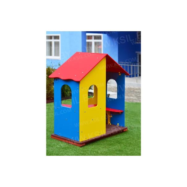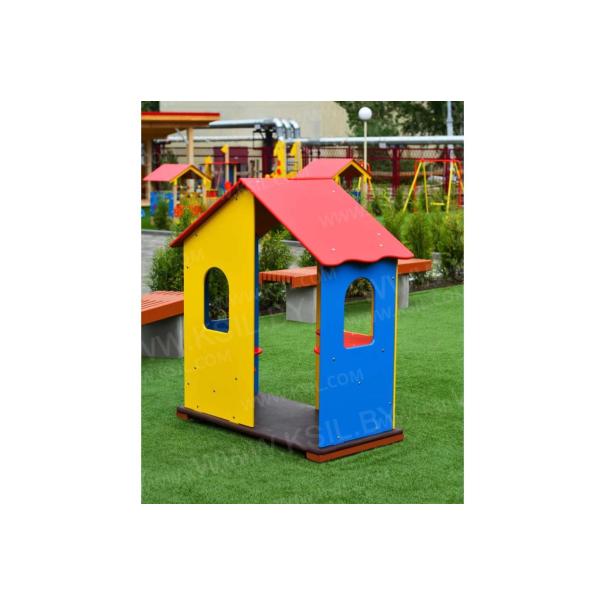 Домик – беседка должен представлять собой устойчивую модульную конструкцию обеспечивающую ребенку комфортные условия для игры на открытом воздухе. Конструкция в виде домика должна иметь двухскатную крышу с волнообразной нижней гранью, два входа, 4 стенки с окошками, угловой стол и угловое сиденье изготовленных из водостойкой фанеры толщиной не менее 21 мм. Пол домика должен быть выполнен из водостойкой противоскользящей фанеры толщиной не менее 21 мм.