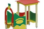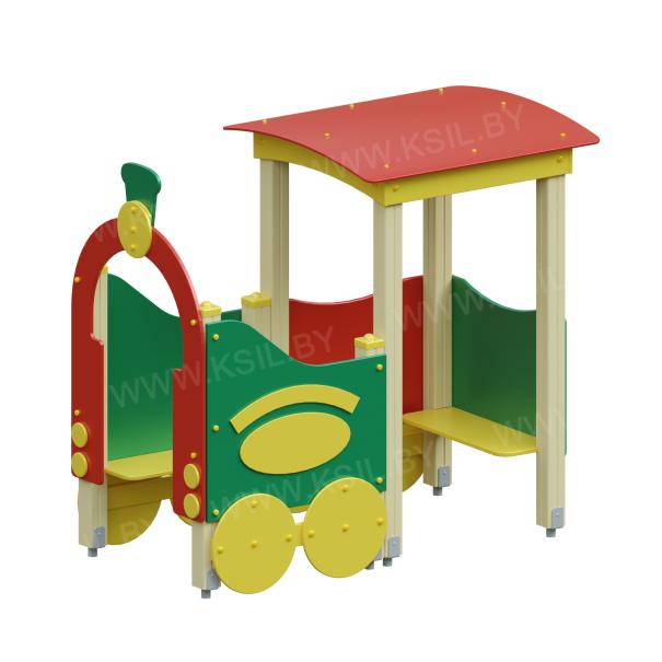 Домик должен представлять собой модульную сборно-разборную конструкцию имитирующую паровозик. Домик должен состоять из башни с крышей, 4 фанерных ограждения с декоративными накладными элементами, декоративной арки. Несущие столбы комплекса должны быть выполнены из клееного деревянного бруса сечением не менее 100х100 мм и иметь скругленный профиль с канавкой посередине. Сверху столб должен заканчиваться пластиковой заглушкой, снизу столб должен заканчиваться металлическим оцинкованным подпятником диаметром не менее 42 мм, который бетонируется в землю. Ограждения, колеса, декоративная арка с прожектором и трубой должны быть выполнены из водостойкой фанеры толщиной не менее 21 мм. Декоративные элементы должны быть выполнены из водостойкой фанеры толщиной не менее 9 мм и не менее 15 мм. Крыша должна состоять из настила, выполненного из водостойкой фанеры толщиной не менее 9 мм и 4-х фронтонов из влагостойкой фанеры толщиной не менее 21 мм.