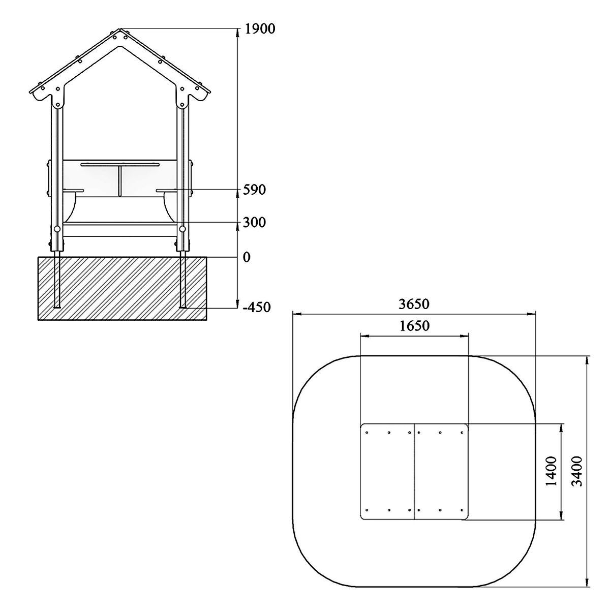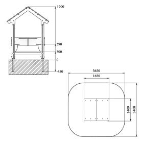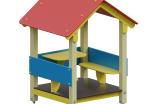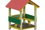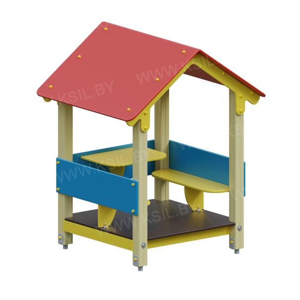 Домик должен представлять собой устойчивую, модульную конструкцию обеспечивающие ребенку комфортные условия для игры на открытом воздухе. Домик должен иметь : 3 фанерных ограждения, 2 скамейки, 1 столик. Несущие столбы должны быть выполнены из клееного деревянного бруса сечением не менее 100х100 мм и иметь скругленный профиль с канавкой посередине. Снизу столб должен заканчиваться металлическим оцинкованным подпятником диаметром не менее 42 мм, который бетонируется в землю. Пол домика должен быть выполнен из водостойкой противоскользящей фанеры толщиной не менее 21 мм. Ограждение должно быть выполнено из водостойкой окрашенной фанеры толщиной не менее 21 мм. Крыша двухскатная должна состоять из скатов, выполненных из водостойкой фанеры толщиной не менее 15 мм и фронтонов из влагостойкой фанеры толщиной не менее 21 мм.