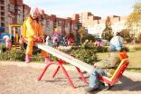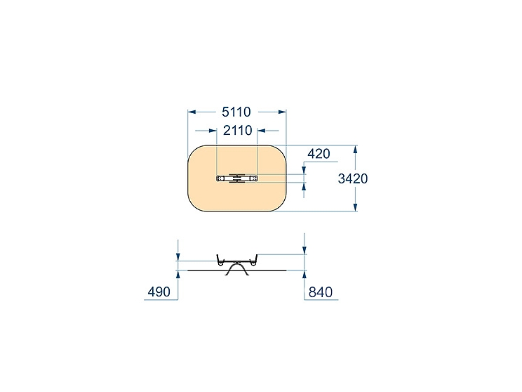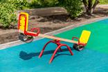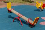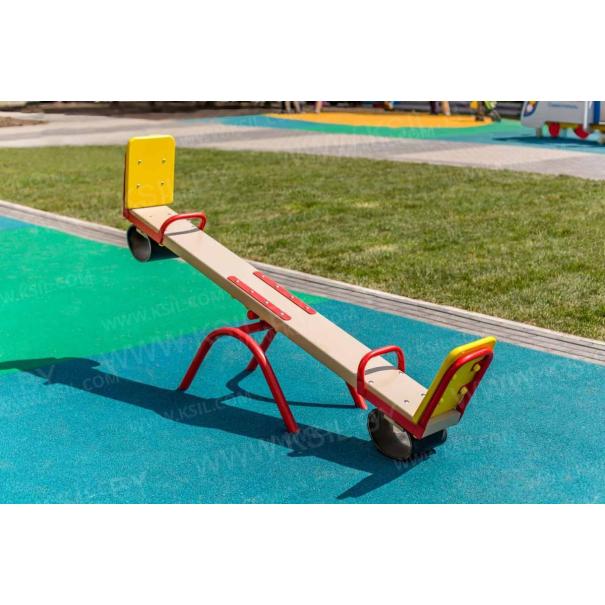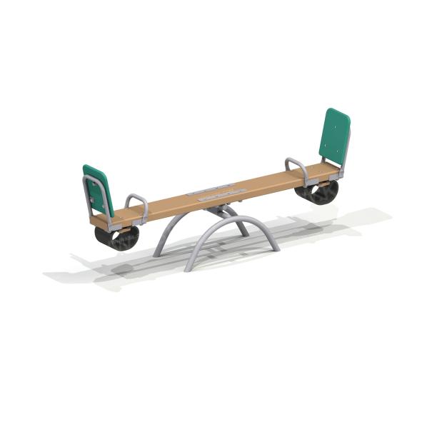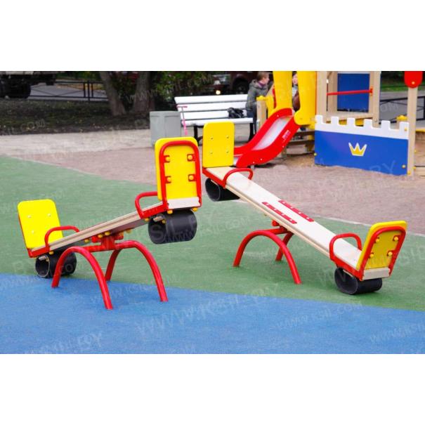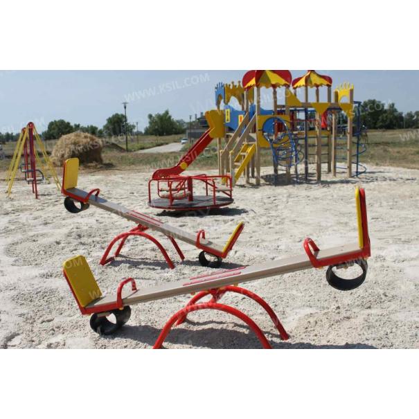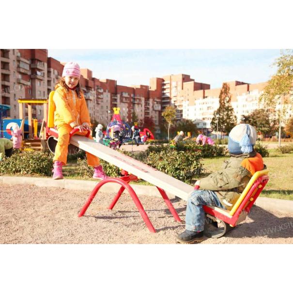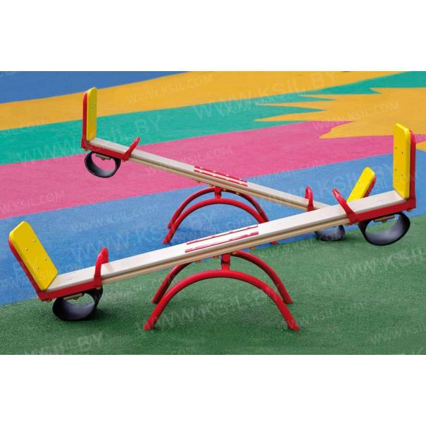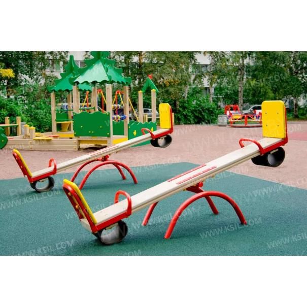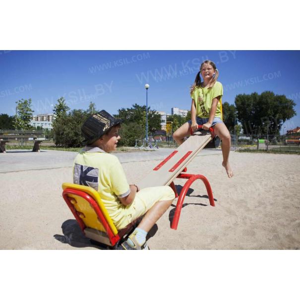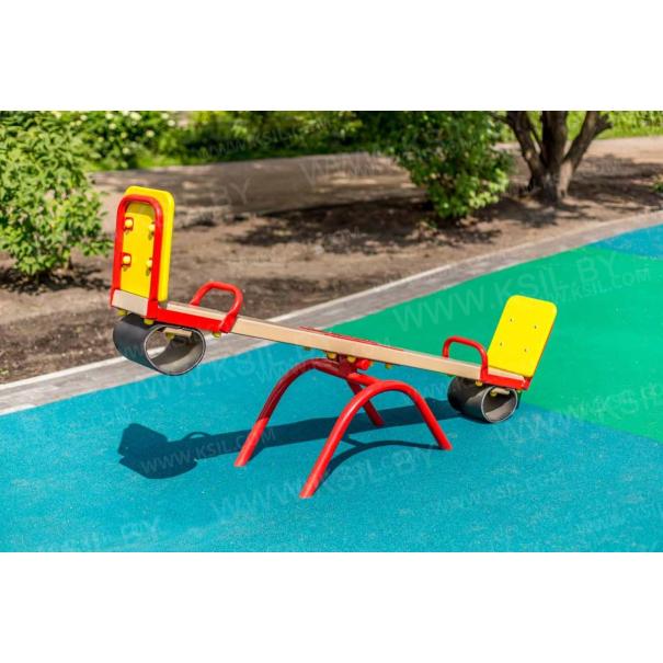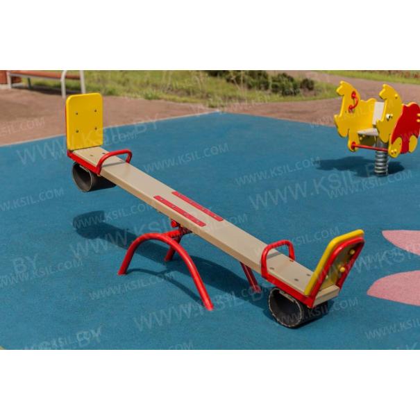 Качалка – балансир должна представлять собой устойчивую конструкцию, обеспечивающую безопасное движение детей в вертикальной плоскости. Качалка должна состоять из основания, корпуса, крепящегося к основанию через качающую опору, 2-х посадочных мест с поручнем и с демпфирующим устройством. Основание должно быть выполнено из металлической трубы диаметром не менее 42 мм. Корпус должен быть выполнен из деревянной доски толщиной не менее 40 мм и водостойкой фанеры толщиной не менее 15 мм склеенных между собой. Качающаяся опора должна быть выполнена из металлических труб и представлять собой подвижную конструкцию по принципу «труба в трубе». Посадочное место со спинкой из водостойкой фанеры толщиной не менее 21 мм. Поручни должны быть выполнены из металлической трубы диаметром не менее 26 мм. Демпфирующее устройство должно быть выполнено из армированной резины толщиной не менее 10 мм.