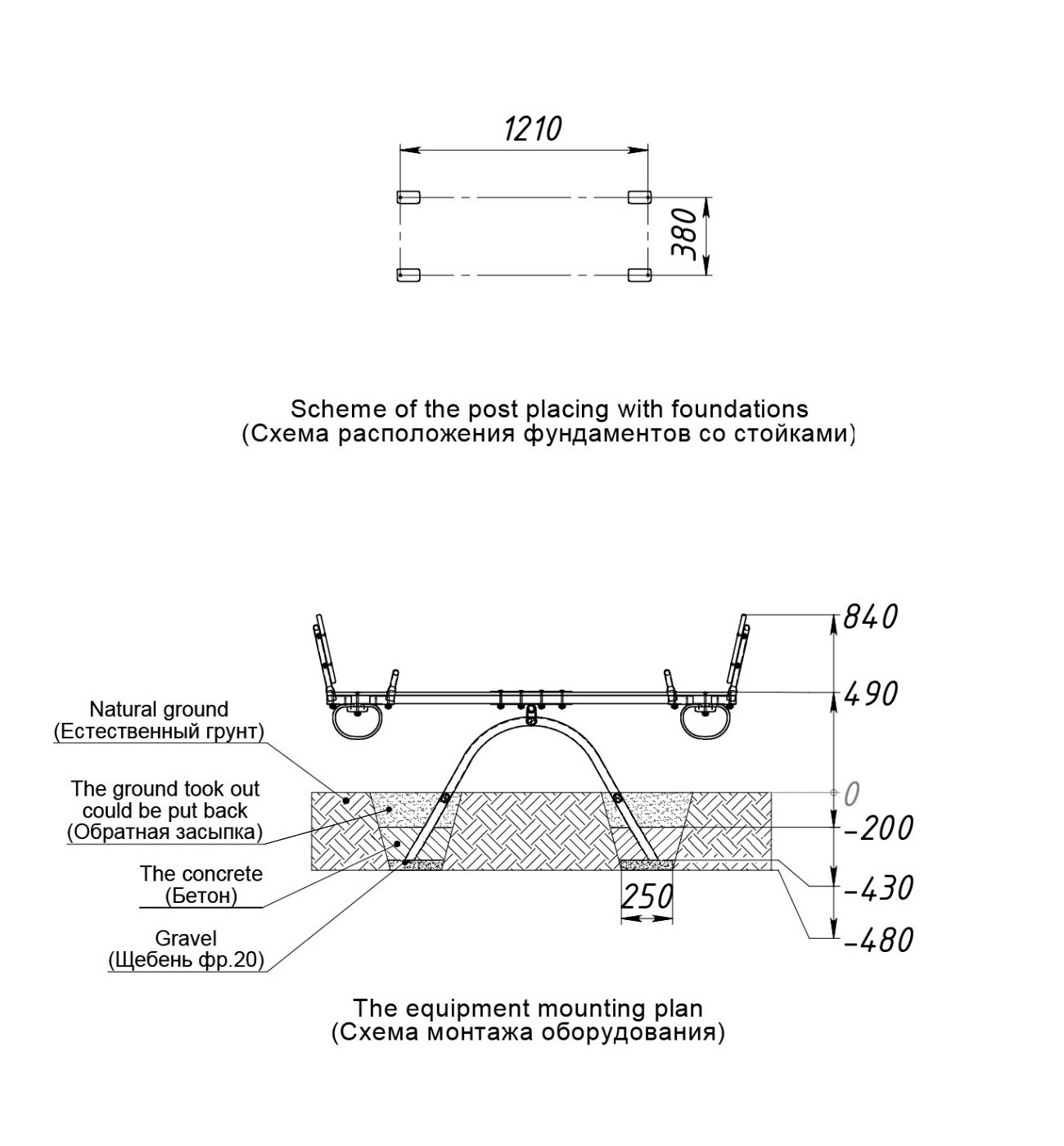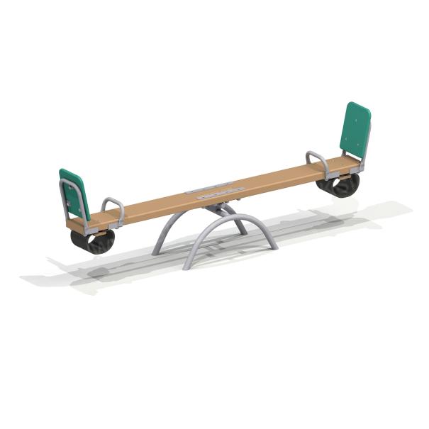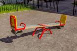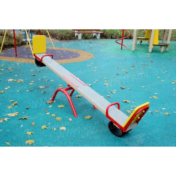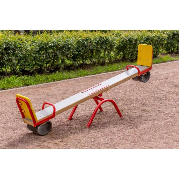 Качалка – балансир должна представлять собой устойчивую конструкцию, обеспечивающую безопасное движение детей в вертикальной плоскости. Качалка должна состоять из основания, корпуса, крепящегося к основанию через качающую опору, 2-х посадочных мест с поручнем и с демпфирующим устройством. Основание должно быть выполнено из металлической трубы диаметром не менее 42 мм. Корпус должен быть выполнен из деревянной доски толщиной не менее 40 мм и водостойкой фанеры толщиной не менее 15 мм склеенных между собой. Качающаяся опора должна быть выполнена из металлических труб и представлять собой подвижную конструкцию по принципу «труба в трубе». Посадочное место со спинкой из водостойкой фанеры толщиной не менее 21 мм. Поручни должны быть выполнены из металлической трубы диаметром не менее 26 мм. Демпфирующее устройство должно быть выполнено из армированной резины толщиной не менее 10 мм.