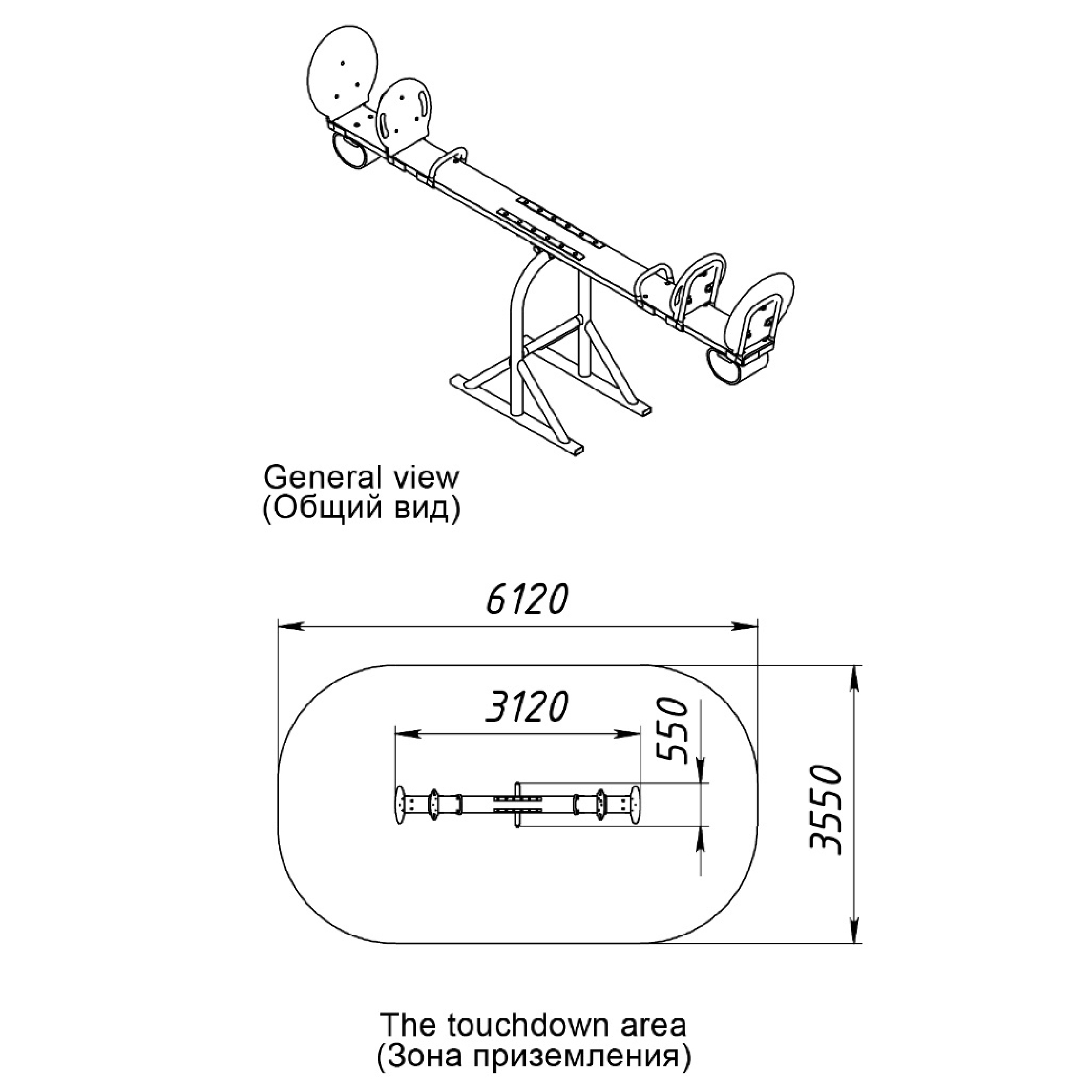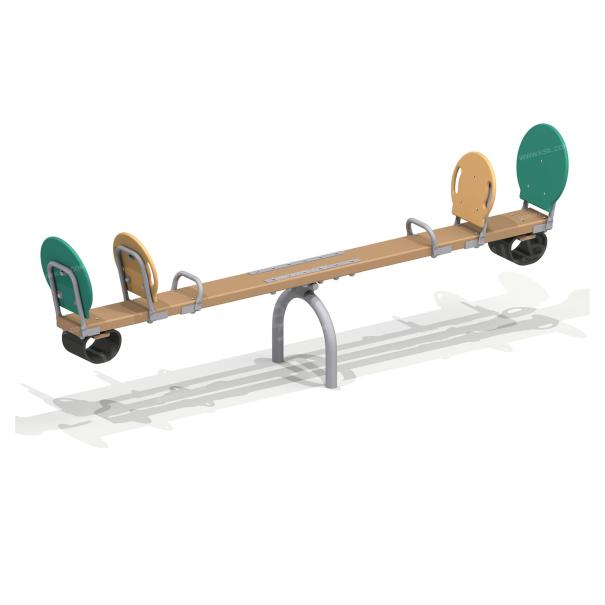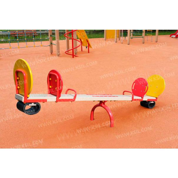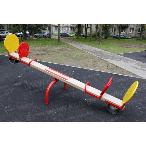 Качалка – балансир должна представлять собой устойчивую конструкцию, обеспечивающую безопасное движение детей в вертикальной плоскости. Качалка должна состоять из основания, корпуса, крепящегося к основанию через качающую опору, 4-х посадочных мест, 2-х поручней и 2-х демпфирующих устройств. Основание должно быть выполнено из металлической трубы диаметром не менее 60 мм. Корпус должен быть выполнен из деревянной доски толщиной не менее 40 мм и водостойкой фанеры толщиной не менее 15 мм склеенных между собой. Качающаяся опора должна быть выполнена из металлических труб и представлять собой подвижную конструкцию по принципу «труба в трубе». Посадочное место со спинкой из водостойкой фанеры толщиной не менее 21 мм. Поручни должны быть выполнены из металлической трубы диаметром не менее 26 мм. Демпфирующее устройство должно быть выполнено из армированной резины толщиной не менее 12 мм.