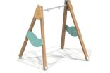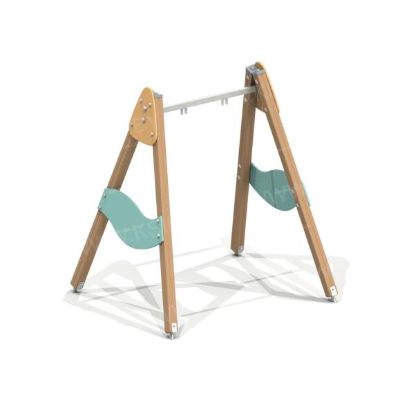 Качели односекционные должны представлять собой устойчивую конструкцию, состоящую из 4-х несущих столбов, балки, 2-х угловых накладок и 2-х декоративных элементов.