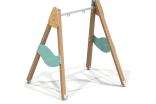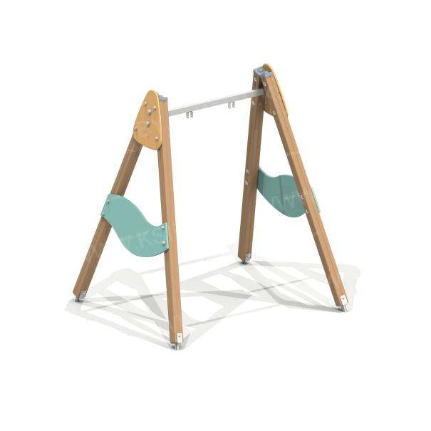 Качели односекционные должны представлять собой устойчивую конструкцию, состоящую из 4-х несущих столбов, балки, 2-х угловых накладок и 2-х декоративных элементов. Несущие столбы должны быть выполнены из клееного деревянного бруса сечением не менее 100х100 мм и иметь скругленный профиль с канавкой посередине. Сверху  открытый столб должен заканчиваться пластиковой заглушкой, снизу столб должен заканчиваться металлическим оцинкованным подпятником диаметром не менее 42 мм, который бетонируется в землю. Балка должна быть выполнена из оцинкованной металлической профильной трубы сечением не менее 60х40  мм. Угловые верхние накладные и нижние декоративные элементы должны быть выполнены из влагостойкой фанеры толщиной не менее 21  мм. Крепление подвеса должно обеспечивать горизонтальное положение относительно плоскости площадки в состоянии покоя и исключать возможность обрыва цепи  в месте  подвески. Подвес гибкий должен быть выполнен из оцинкованной стальной цепи, изготовленной методом контактной электросварки. На поверхности цепи не должно быть  трещин, ситовидной пористости, плены и расслоения. К подвесу должно крепиться плоское сиденье, выполненное из обрезиненного металла.
