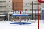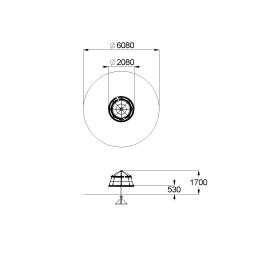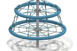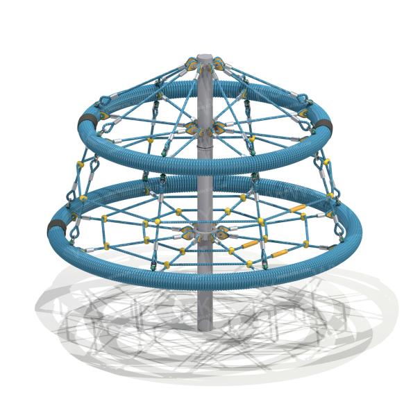 Сетка с вращением должна представлять собой устойчивую конструкцию, обеспечивающую безопасное вращение сетки для детей вокруг вертикальной оси. Сетка с вращением должна состоять из конструкцию из нижнего сиденья в форме круга и наружного кольца, крепящихся к центральной стойке и соединенных между собой канатами. На центральной металлической стойке сетки с вращением, сверху закрытой металлической заглушкой, должно быть установлено круглое сиденье, вращающееся на круглом валу с подшипниками. Сиденье диаметром не менее 2000 мм должно быть выполнено в виде сетки-паутины из полипропиленового армированного каната и наружного кольца из стальной трубы, плотно оплетенного полиамидным канатом. Параллельно сиденью на наружном кольце диаметром не менее 1600 мм из стальной трубы, плотно оплетенном полиамидным канатом должны быть установлены 8 лучей из полипропиленового армированного каната, которые крепятся в центре к стойке карусели. Данные элементы должны крепиться между собой сеткой из полипропиленового армированного каната из 16 ячеек. Канаты сеток должны быть надежно закреплены специальными пластиковыми креплениями и зажимами из алюминиевого сплава, позволяющими удерживать конструкцию сеток под нагрузкой. Верхний элемент должен крепиться к несущей стойке в верхней точке на 8-ми лучах из полипропиленового армированного каната. В местах крепления канатов к наружным кольцам и центральной стойке используются закрытые коуши. Несущая вертикальная стойка карусели выполнена из металлической трубы диаметром 100мм.