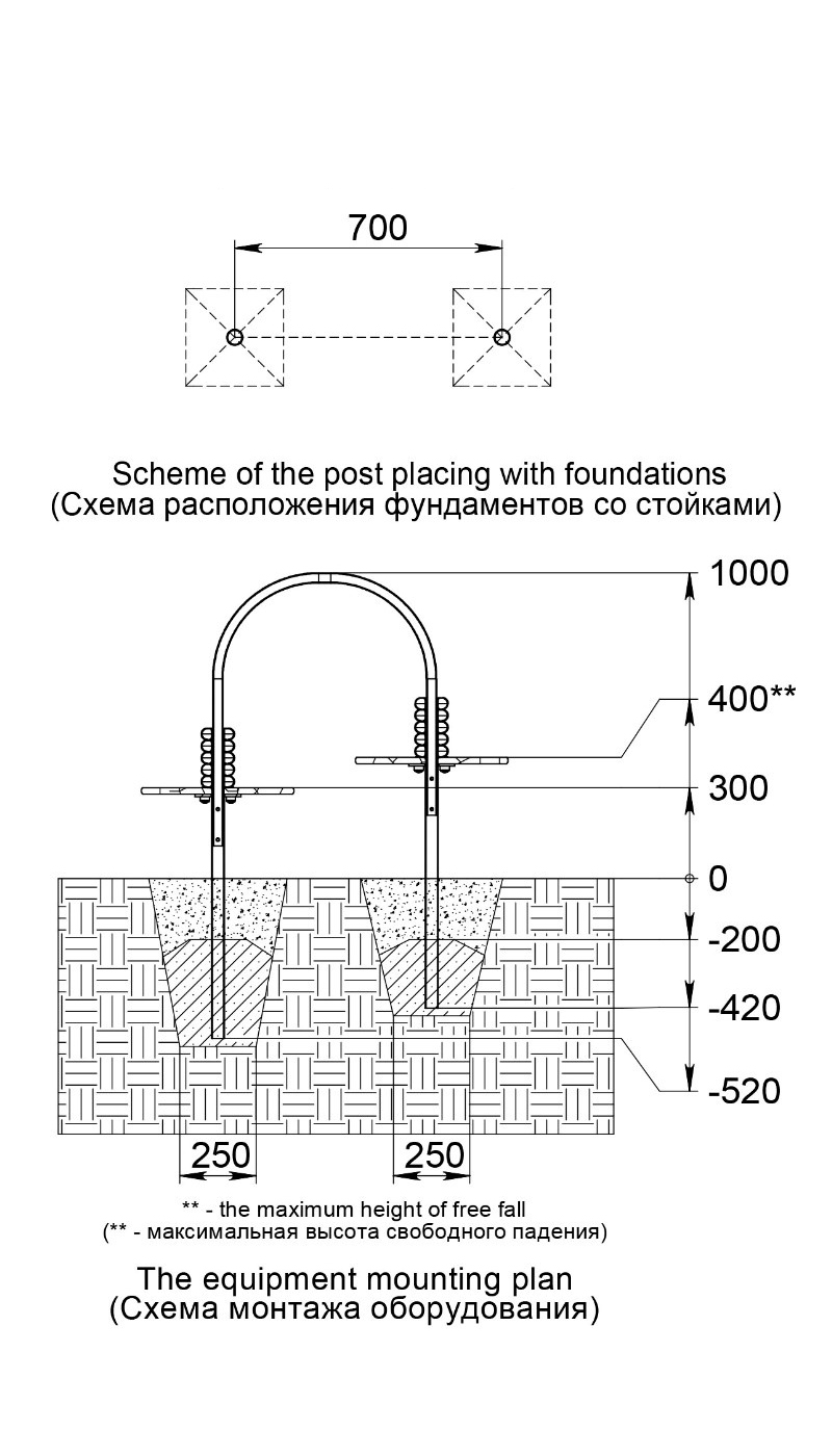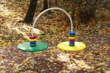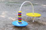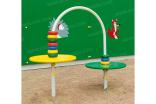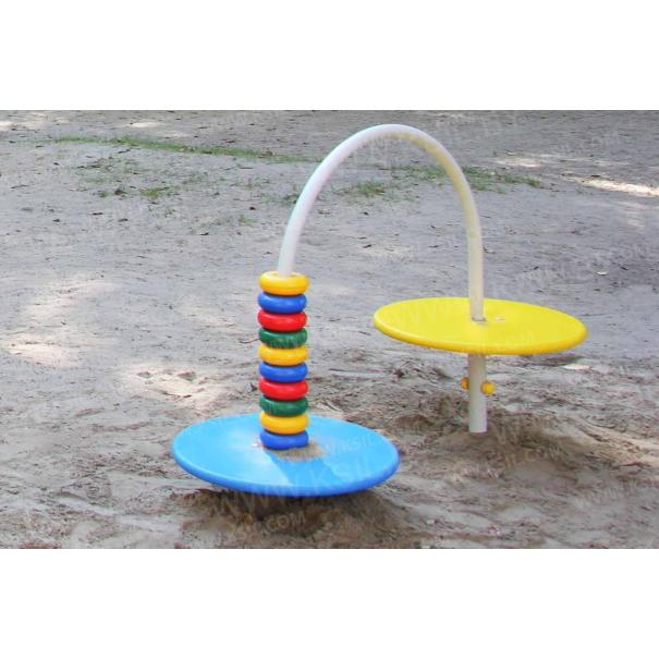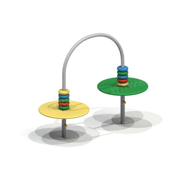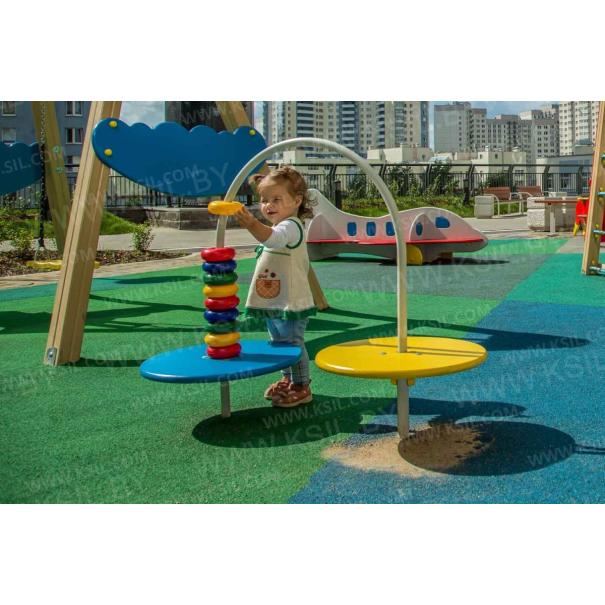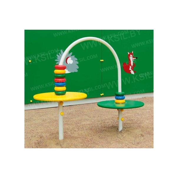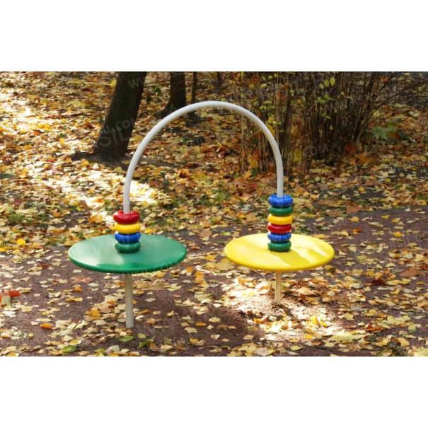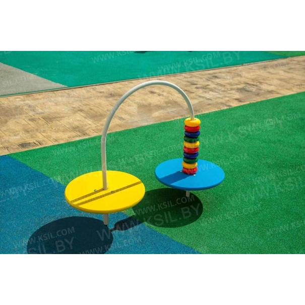 Счеты со столиками должны представлять собой устойчивую конструкцию обеспечивающую ребенку комфортные условия для игры на открытом воздухе и состоять из разборного каркаса в виде дуги со стойками, с разновысокими столиками, пластиковыми или деревянными баранками. Дуга должна быть выполнена из металлической трубы диаметром не менее 26 мм. Круглые столики должны быть выполнены из влагостойкой фанеры толщиной не менее 21 мм.