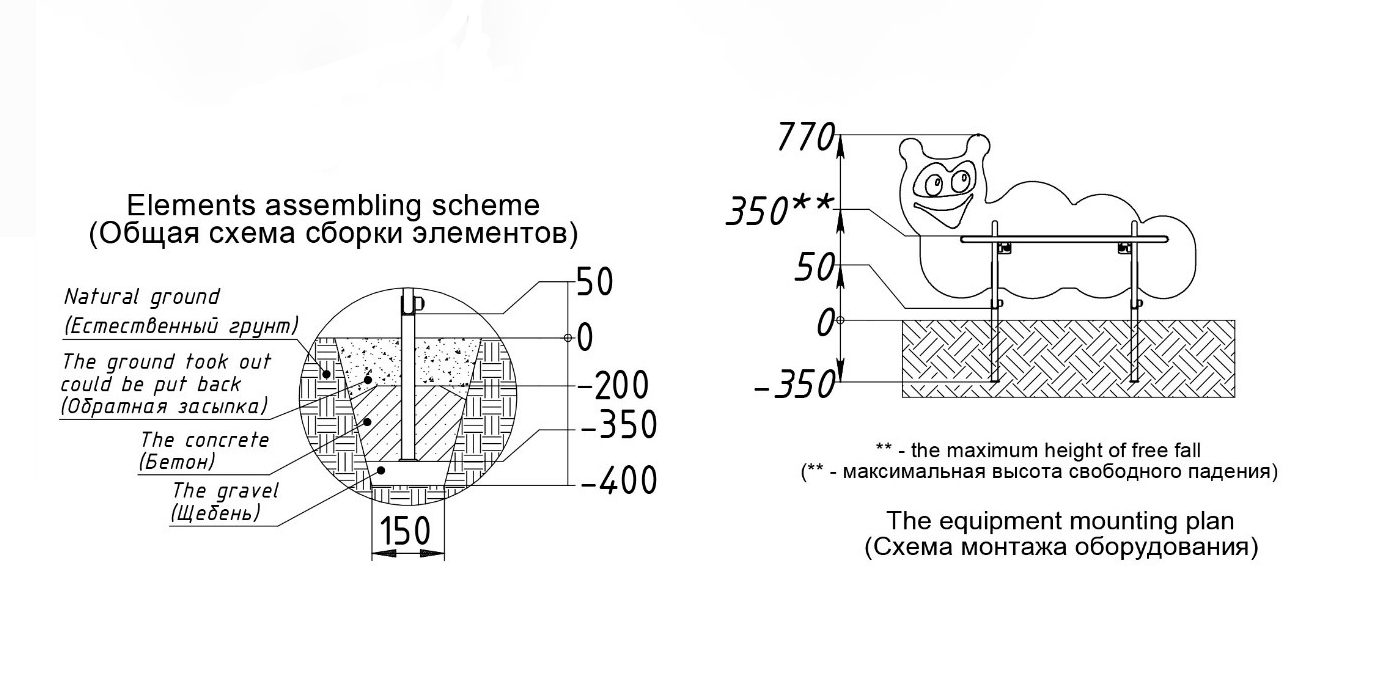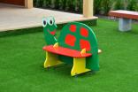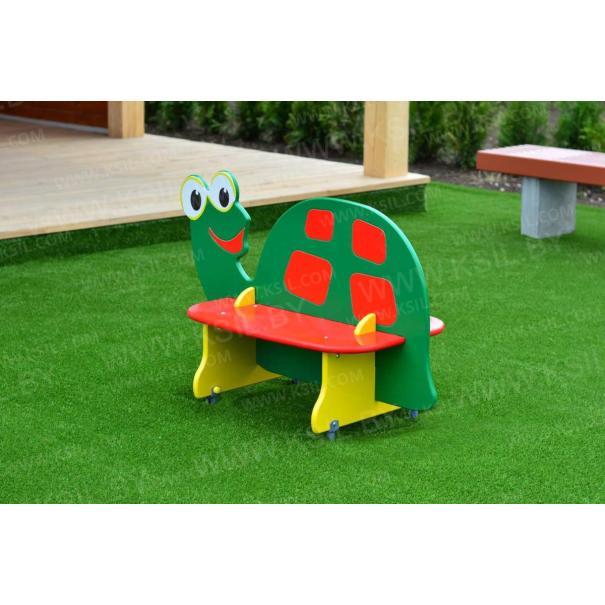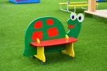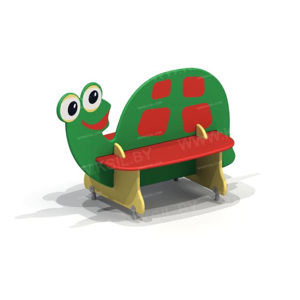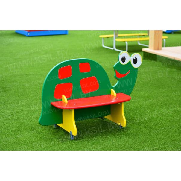 Скамейка в виде черепахи должна представлять собой устойчивую конструкцию, предназначенную для отдыха и состоять из сидений, спинки, опор, установленных на металлических подпятниках. Подпятники в количестве не мене 4-х штук должны быть выполнены из металлической трубы диаметром не менее 26 мм и листового металла толщиной не менее 4 мм. Спинка должна быть выполнена в виде черепахи с художественным оформлением, с двух сторон от спинки должны быть расположены сиденья, под сиденьями расположены опоры в виде лапок черепахи. Спинка и сиденья должны крепиться в пазы опор. Сиденье, спинка, опоры должны быть выполнены из водостойкой фанеры толщиной не менее 21 мм.