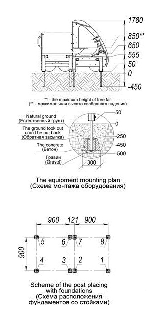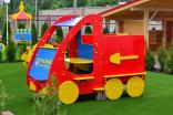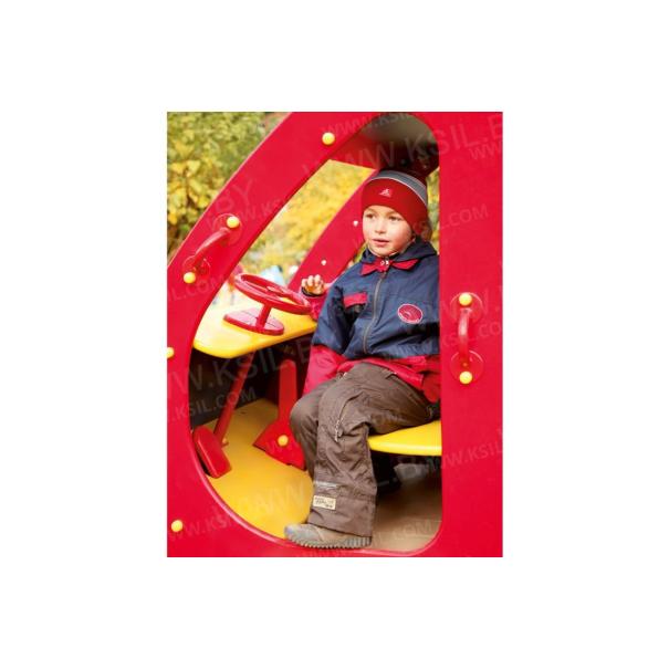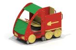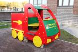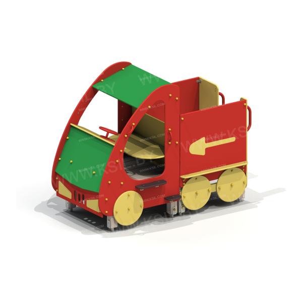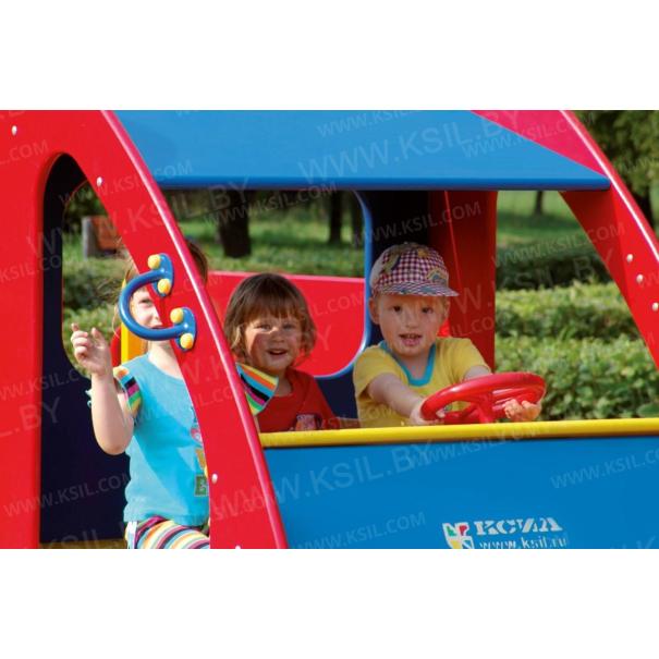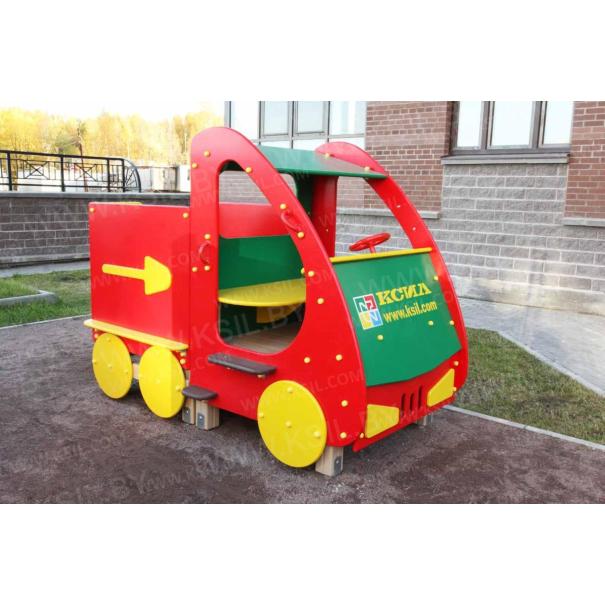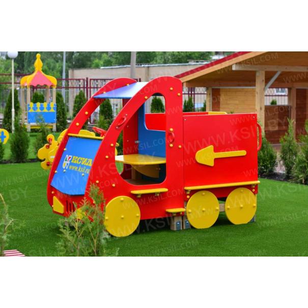 Машинка должна представлять собой модульную сборно-разборную конструкцию, состоящую из двух башен, имитирующие кабину и кузов машины. К башне 1 с крышей, с высотой площадки не менее 650 мм должны быть пристроены: боковые стенки с входом, к которым крепятся две ступеньки и поручень, декоративные элементы в виде колес, задняя стенка с фигурным вырезом, к которой крепится скамейка, передняя стенка с декоративными элементами в виде решетки радиатора, фар и панели с рулем, педалью и рычагом передач. К башне 2 с высотой площадки не менее 650 мм должны быть пристроены: фанерные ограждения, альпинистская стенка с отверстиями для рук и ног, поручни. К ограждению должны крепиться скамейки и декоративные накладные элементы в виде лопаты. По боковым сторонам конструкции должны крепиться декоративные накладные элементы в виде колес. Несущие разновысокие столбы комплекса должны быть выполнены из клееного деревянного бруса сечением не менее 100х100 мм и иметь скругленный профиль с канавкой посередине. Снизу столб должен заканчиваться металлическим оцинкованным подпятником диаметром не менее 42 мм, который бетонируется в землю. Полы башен должны быть выполнены из водостойкой нескользящей фанеры толщиной не менее 21 мм. Стенки башен, ограждения, скамейки, колеса, альпинистская стенка должны быть изготовлены из водостойкой окрашенной фанеры толщиной не менее 21 мм. Поручни должны быть выполнены из металлических труб диаметром не менее 33 мм и не менее 21 мм. Ступеньки должны быть выполнены из водостойкой противоскользящей фанеры толщиной не менее 21 мм. Декоративные накладные элементы должны быть выполнены из водостойкой фанеры толщиной не менее 15 мм.