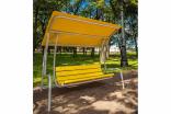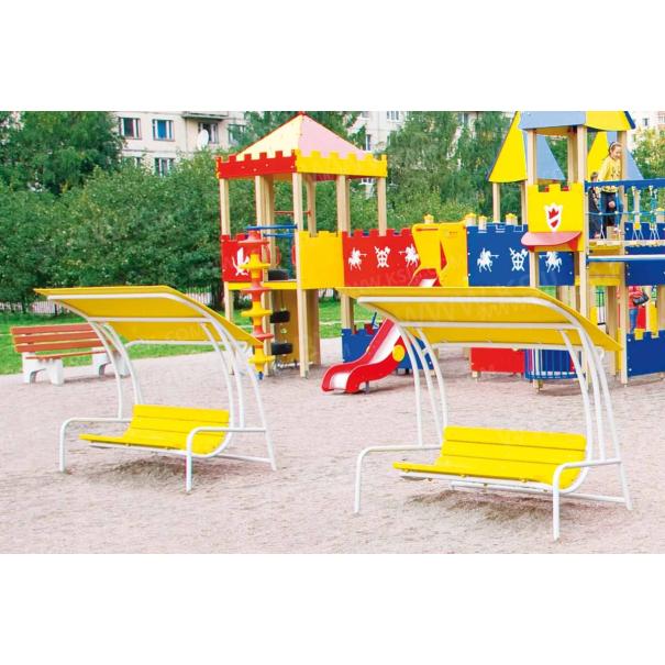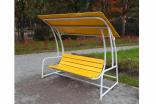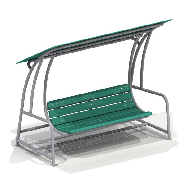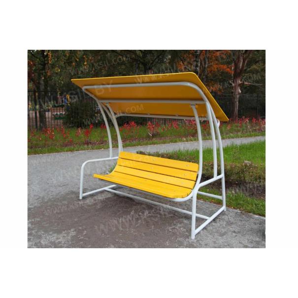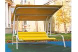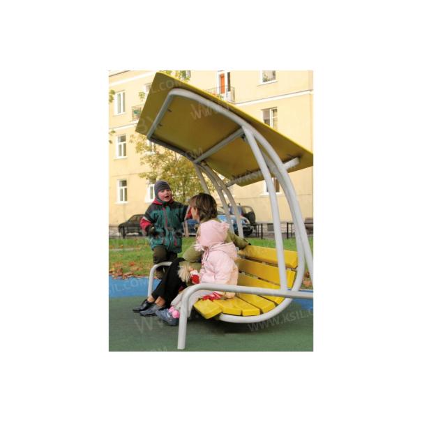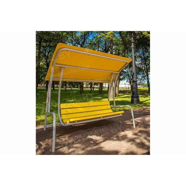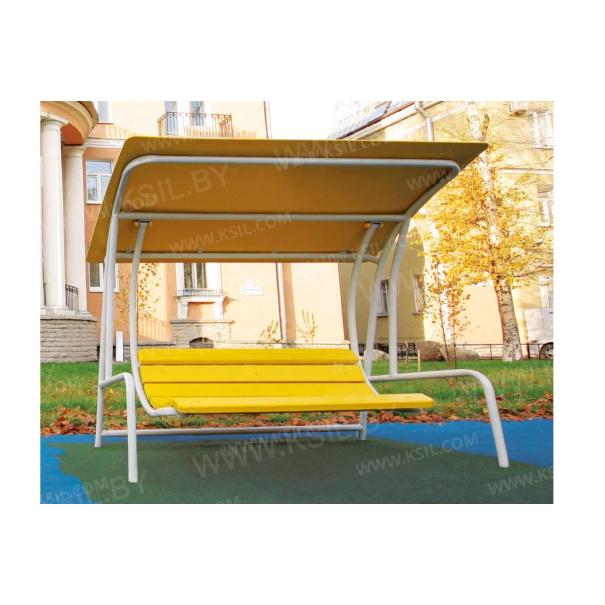 Оборудование должно представлять собой устойчивую конструкцию, предназначенную для отдыха на открытом воздухе и состоять из каркаса, сиденья со спинкой, подвеса и навеса. Каркас и подвес сиденья должны быть выполнены из металлической трубы диаметром не менее 42 мм. Качание подвеса должно быть реализовано на капролоновых элементов. Сиденье со спинкой должно быть выполнено из деревянных досок сечением не менее 90х40 мм и сечением не менее 110х40 мм. Крыша навеса должна быть выполнена из влагостойкой фанеры толщиной не менее 9 мм.