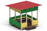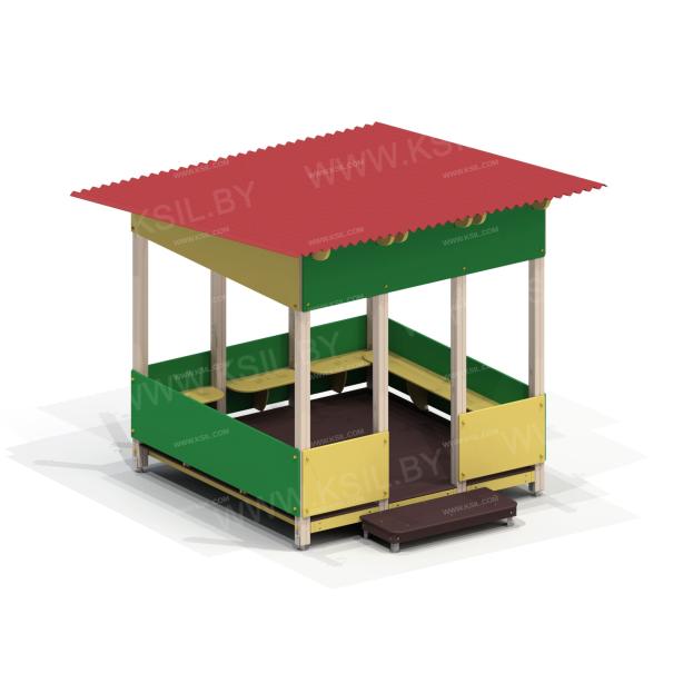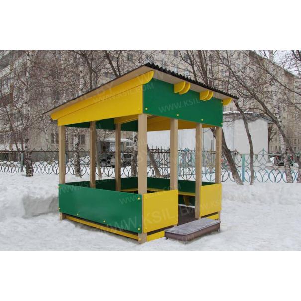 Навес должен представлять собой устойчивую конструкцию обеспечивающую защиту от воздействия солнечных лучей и атмосферных осадков. Навес должен состоять из крыши, покатую на одну сторону, скат которой покрыт влагостойкой фанерой толщиной не менее 15 мм и листами кровельного ондулина, несущих столбов, пола и боковых стен. Под кровлей должны быть установлены скамейки, расположенные вдоль боковых стенок. К главному входу должен крепиться порог. Несущие столбы должны быть выполнены из клееного деревянного бруса сечением не менее 100х100 мм и иметь скругленный профиль с канавкой посередине. Снизу столб должен заканчиваться металлическим оцинкованным подпятником диаметром не менее 42 мм, который бетонируется в землю. Пол и настил порога должен быть выполнен из противоскользящей влагостойкой фанеры толщиной не менее 21 мм. Стенки, скамейки, накладные элементы должны быть изготовлены из влагостойкой фанеры толщиной не менее 21 мм.