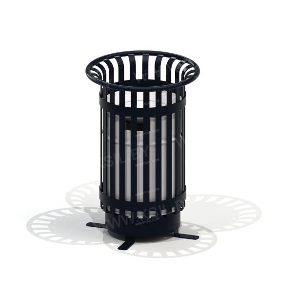 Урна должна представлять собой устойчивую конструкцию, обеспечивающую временное хранение ТБО. Урна должна состоять из цилиндрического корпуса, выполненного из вертикальных металлических оцинкованных полос шириной не менее 25 мм, соединенных между собой ободками, на круглом металлическом основании с не менее 4-мя ножками. Внутрь корпуса должна помещаться вставка. Вставка для урны поставляется отдельно.