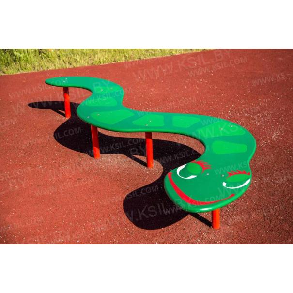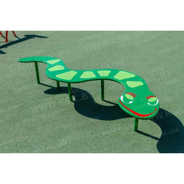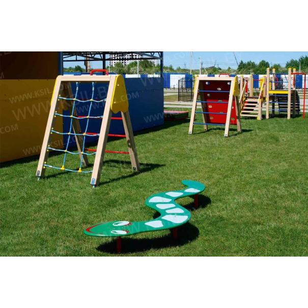 Дорожка «Змейка» должна представлять собой устойчивую конструкцию, состоящая 6-ти опорных стоек и настила в виде змейки с художественной росписью. Стойки должны быть выполнены из металлической трубы диаметром не менее 42 мм, основание которых бетонируется в землю. Настил должен быть изготовлен из влагостойкой фанеры толщиной не менее 21 мм.