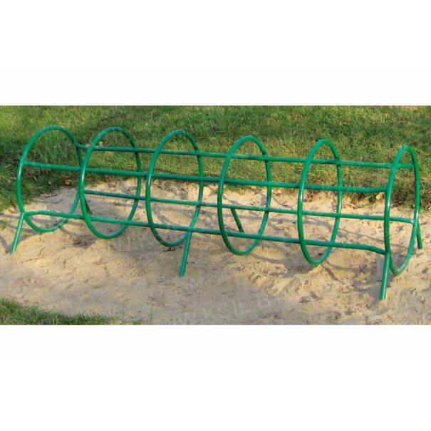 Спираль горизонтальная должна представлять собой устойчивую цельносварную конструкцию, состоящую из каркаса и 6-ти колец. Металлический каркас должен состоять из 6-ти опор и 4-х направляющих. Кольца и каркас должны быть выполнены из металлической трубы диаметром не менее 26 мм.