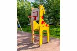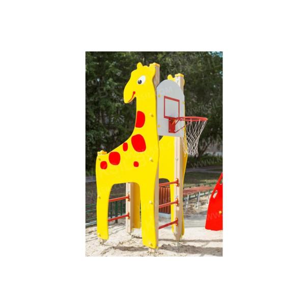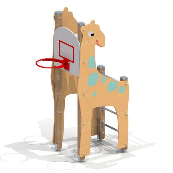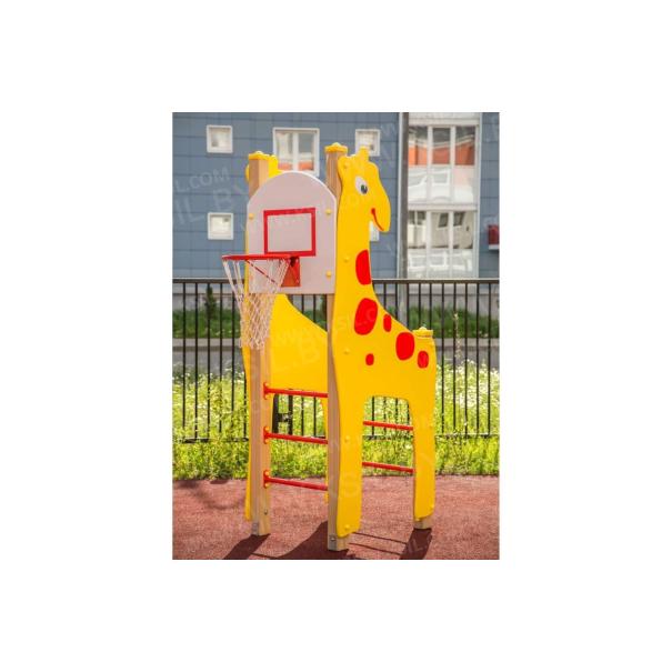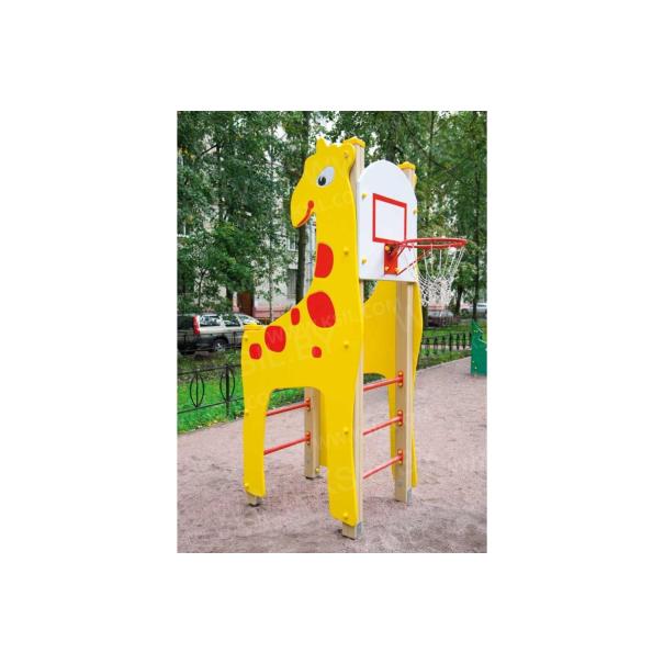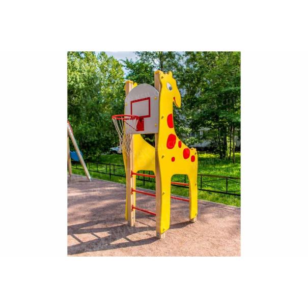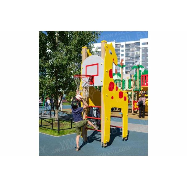 Спортивный комплекс должен представлять собой модульную сборно-разборную конструкцию и состоять из 2-х боковых стенок в виде жирафа, шведской стенки, баскетбольного щита с кольцом. Несущие столбы комплекса должны быть выполнены из клееного деревянного бруса сечением не менее 100х100 мм, имеющий скругленный профиль с канавкой посередине. Снизу столб должен заканчиваться металлическим оцинкованным подпятником диаметром не менее 42 мм, который бетонируется в землю. Шведская стенка должна состоять из перекладин, выполненных из металлической трубы диаметром не менее 33 мм. Баскетбольный щит с металлическим кольцом должен быть выполнен из водостойкой фанеры толщиной не менее 21 мм. Боковые стенки должны быть изготовлены из водостойкой фанеры толщиной не менее 21 мм.